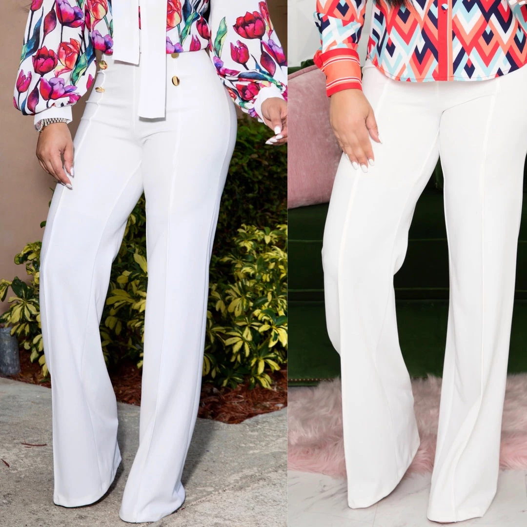 Our #1 selling pants are back in White. Super stretchy, absolutely flattering, 6 button super high waist pants! A must have!