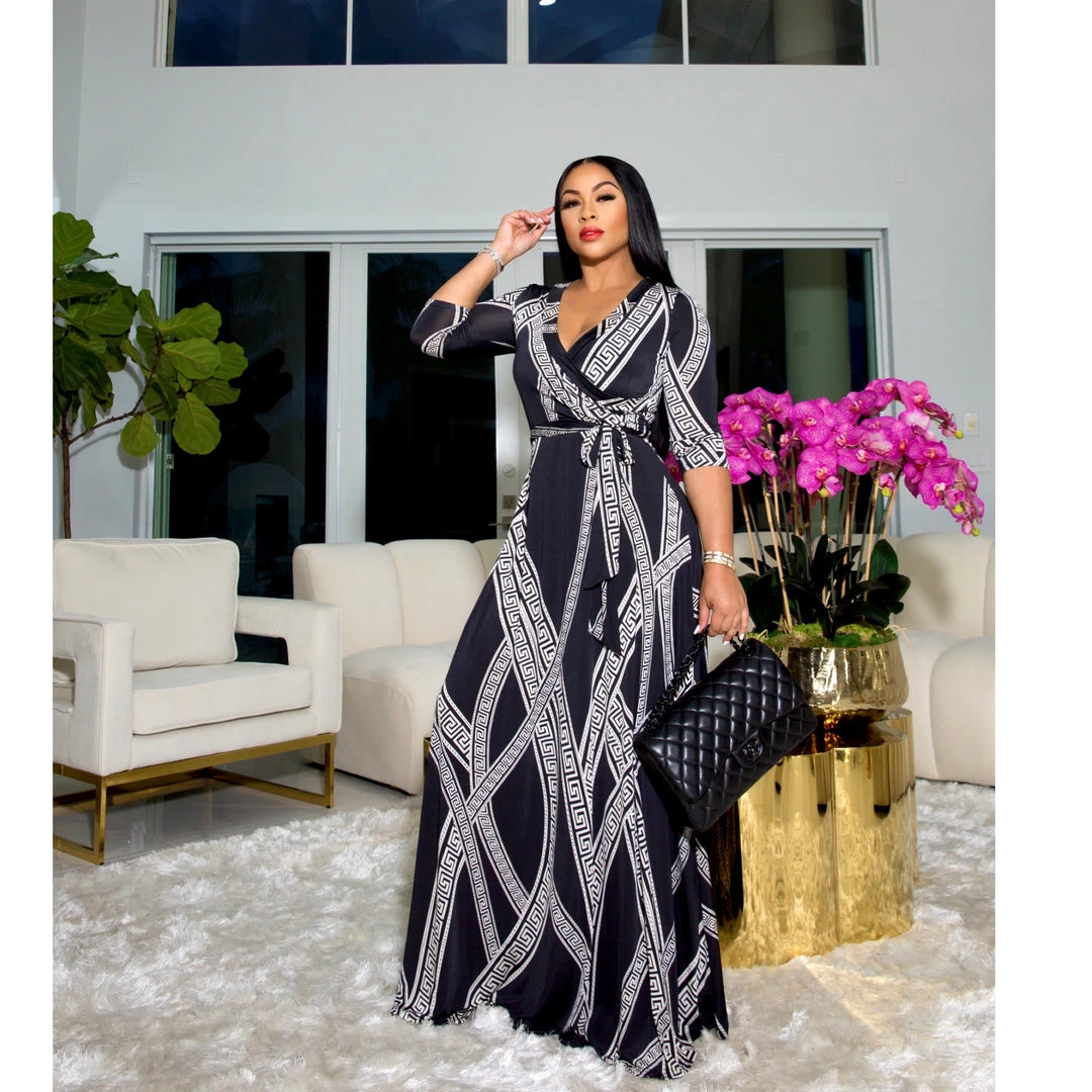 Our favorite wrap dress is back in this beautiful print. Long, beautiful, phenomenal stretch and fits like a dream!