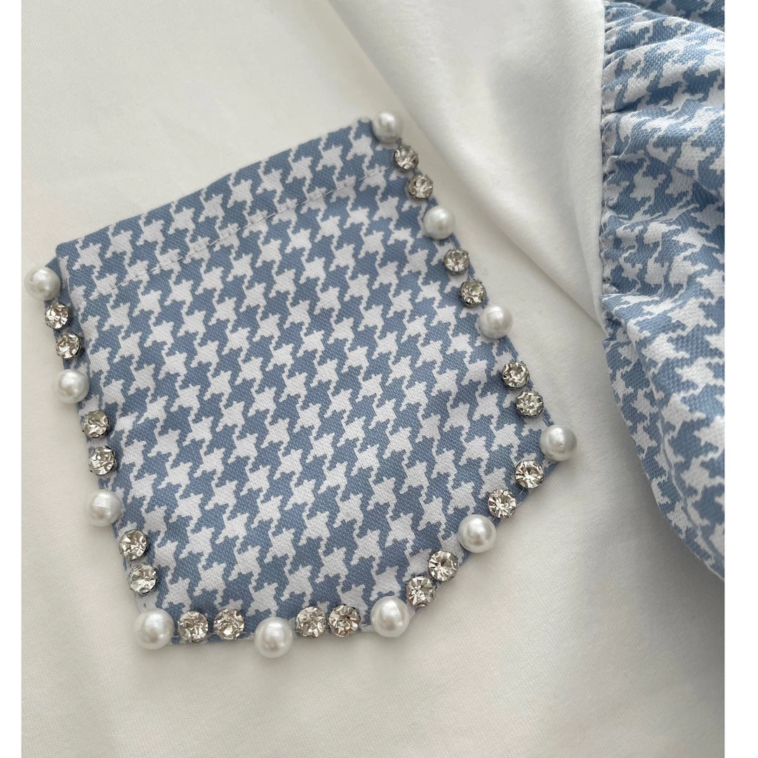 Nothing says sophisticated beauty like houndstooth, rhinestones and pearls! Phenomenal stretch, a must have!!!