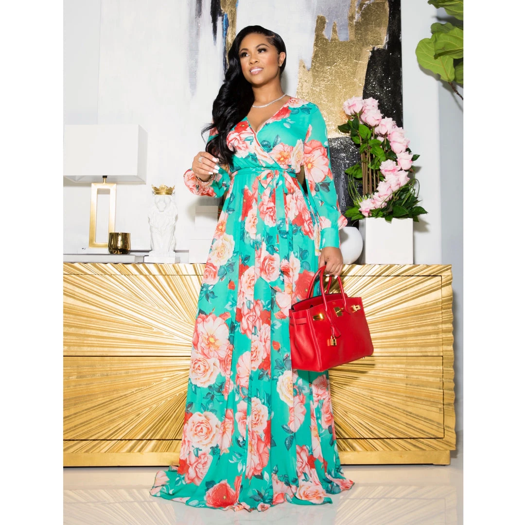 Be prepared for the stares, the smiles and looking your very best in this incredibly beautiful chiffon wrap dress. Fully lined, belted, balloon sleeves with gold buttons. This dress is gorgeous! Check out a video of me wearing it on my instagram page (@msblingmiami).