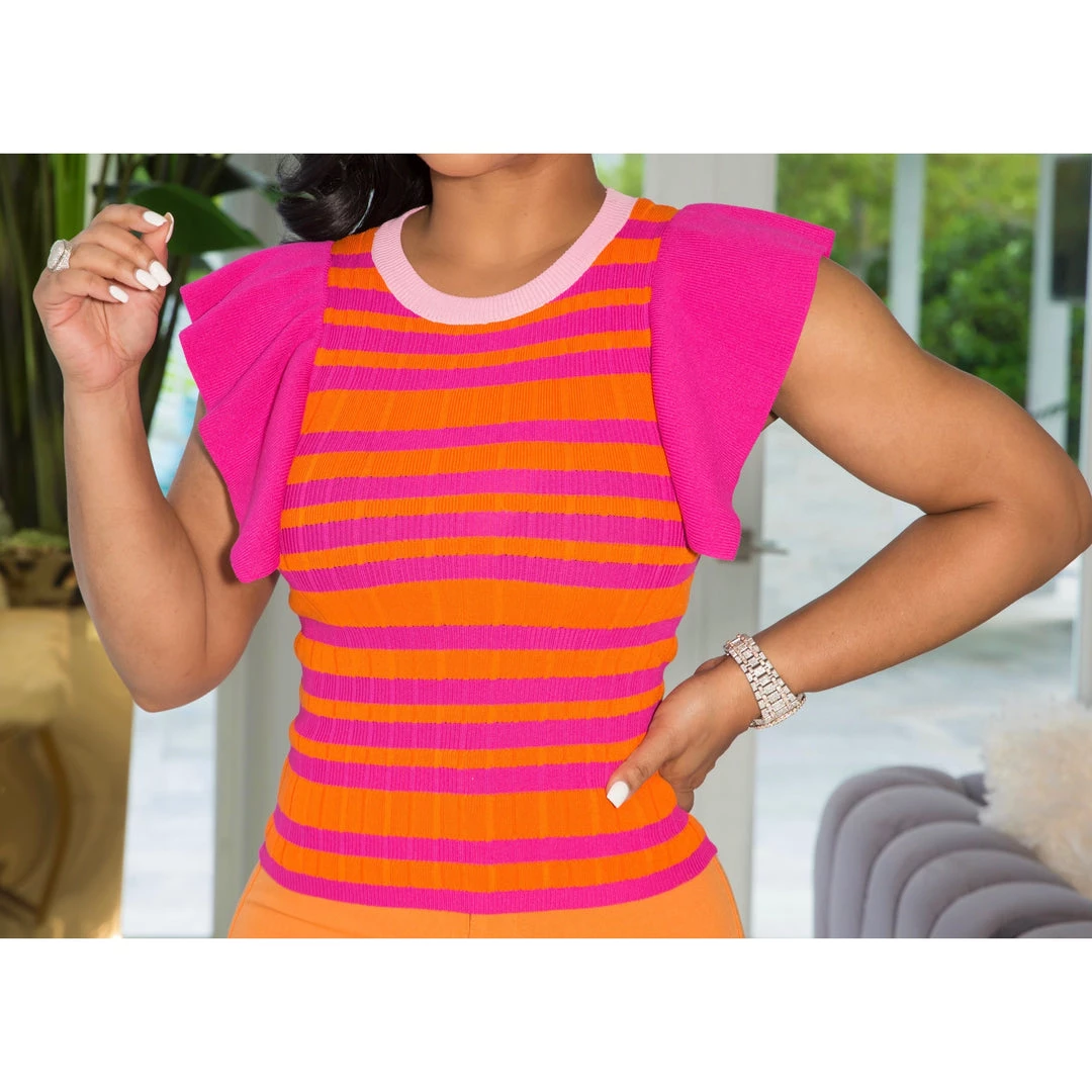 Words can’t express how much we love this gorgeous, draped sleeve, super stretch, knit blouse. A must have!!!