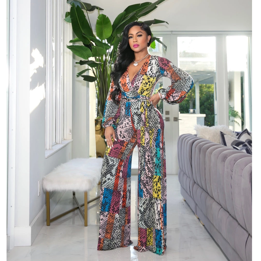 Belted, empire waist, super stretch jumpsuit.