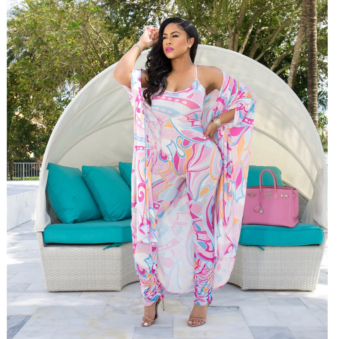 You’ll never get tired of receiving compliments in this beauty. Oversized kimono and matching ruched jumpsuit that fits like a dream. Your vacation needs this!!