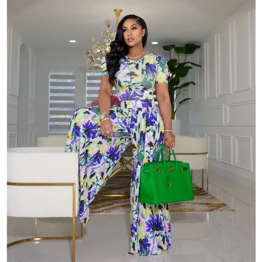 You’ll love this beautiful, puff shoulder stretch top and matching super wide leg palazzo pants.