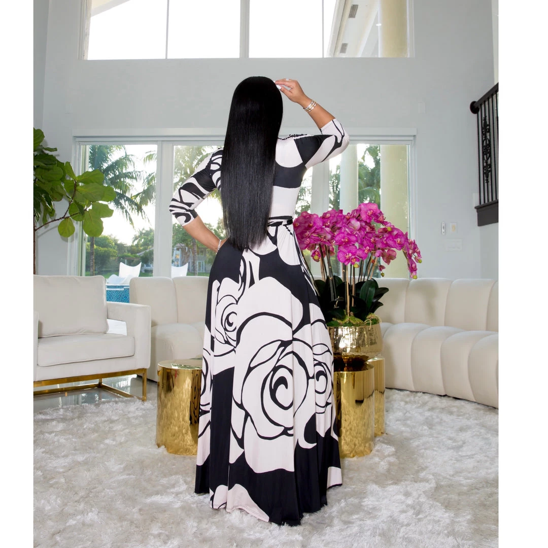 Our favorite wrap dress is back in this beautiful print. Long, beautiful, phenomenal stretch and fits like a dream!