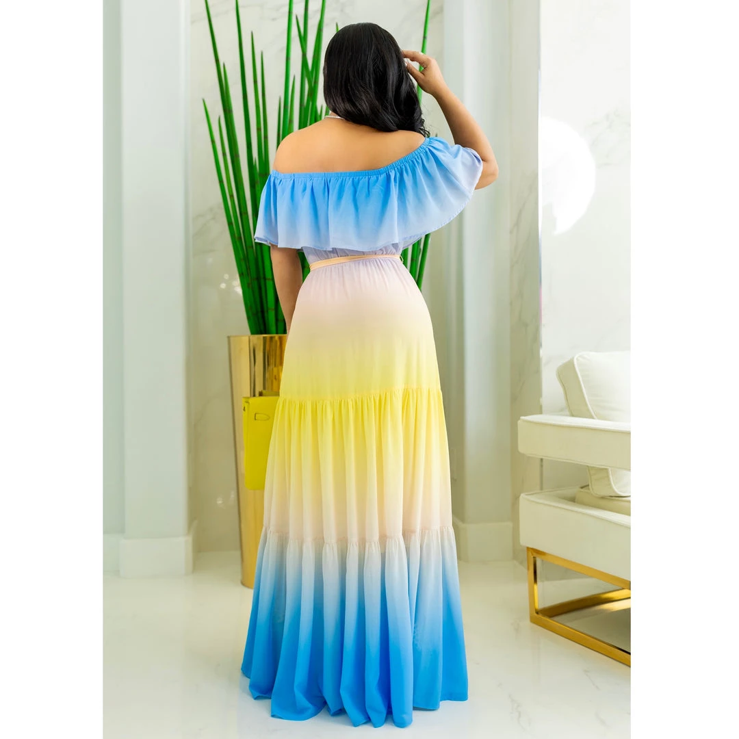 Gorgeous, ombré chiffon dress. Belted, fully lined and stretchy elastic waistband. This dress is amazing an an absolute must have!!!!