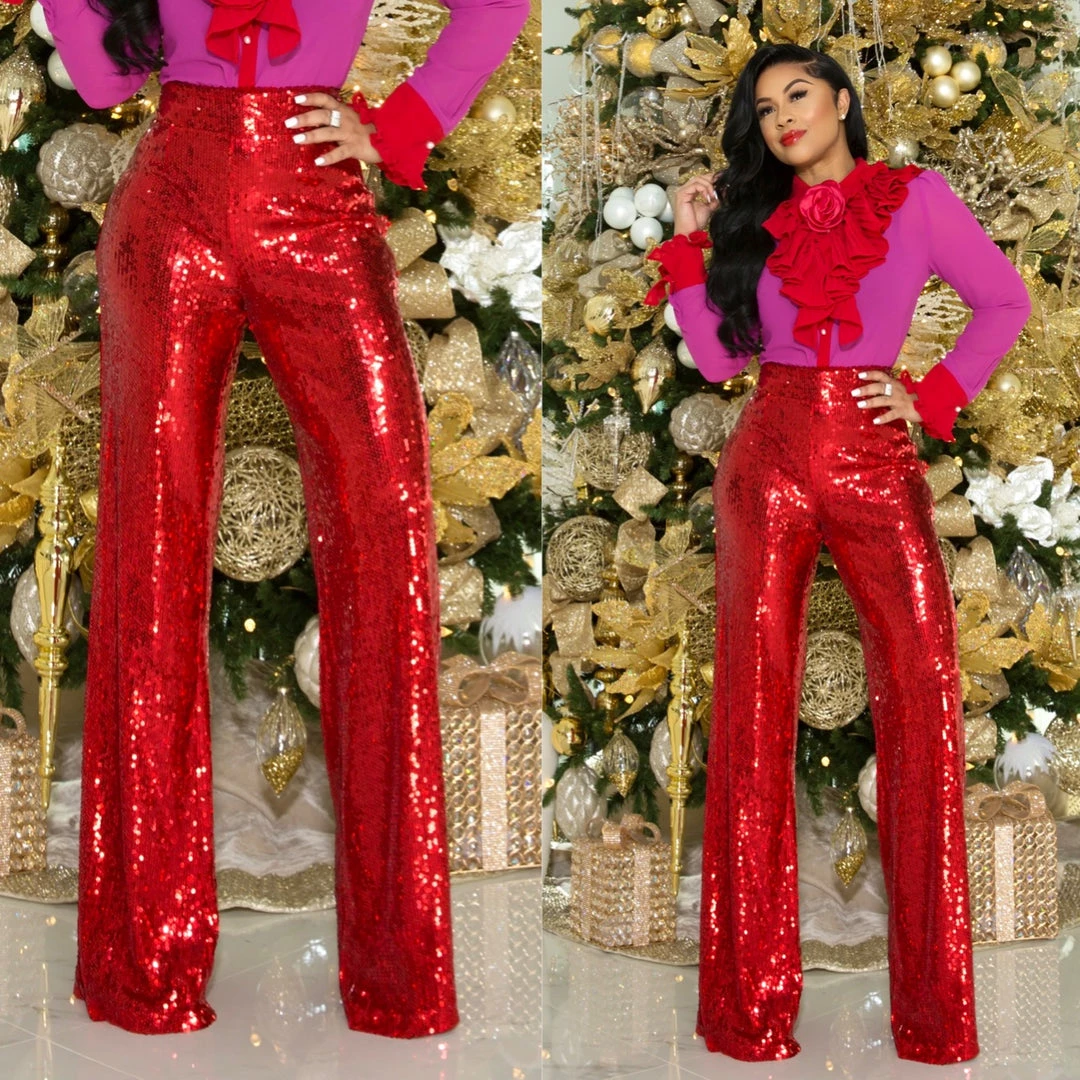 It won’t matter who’s event, party or celebration you attend because the room will belong to you! Brace yourself for an evening of compliments in these amazing sequin pants. Get the entire look and pair it perfectly with our “First Lady” blouse.