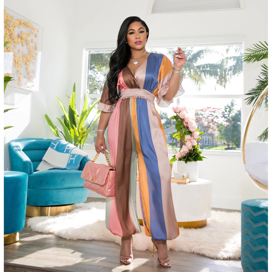 Get your shine on in this absolutely dazzling jumpsuit satin jumpsuit.Â
